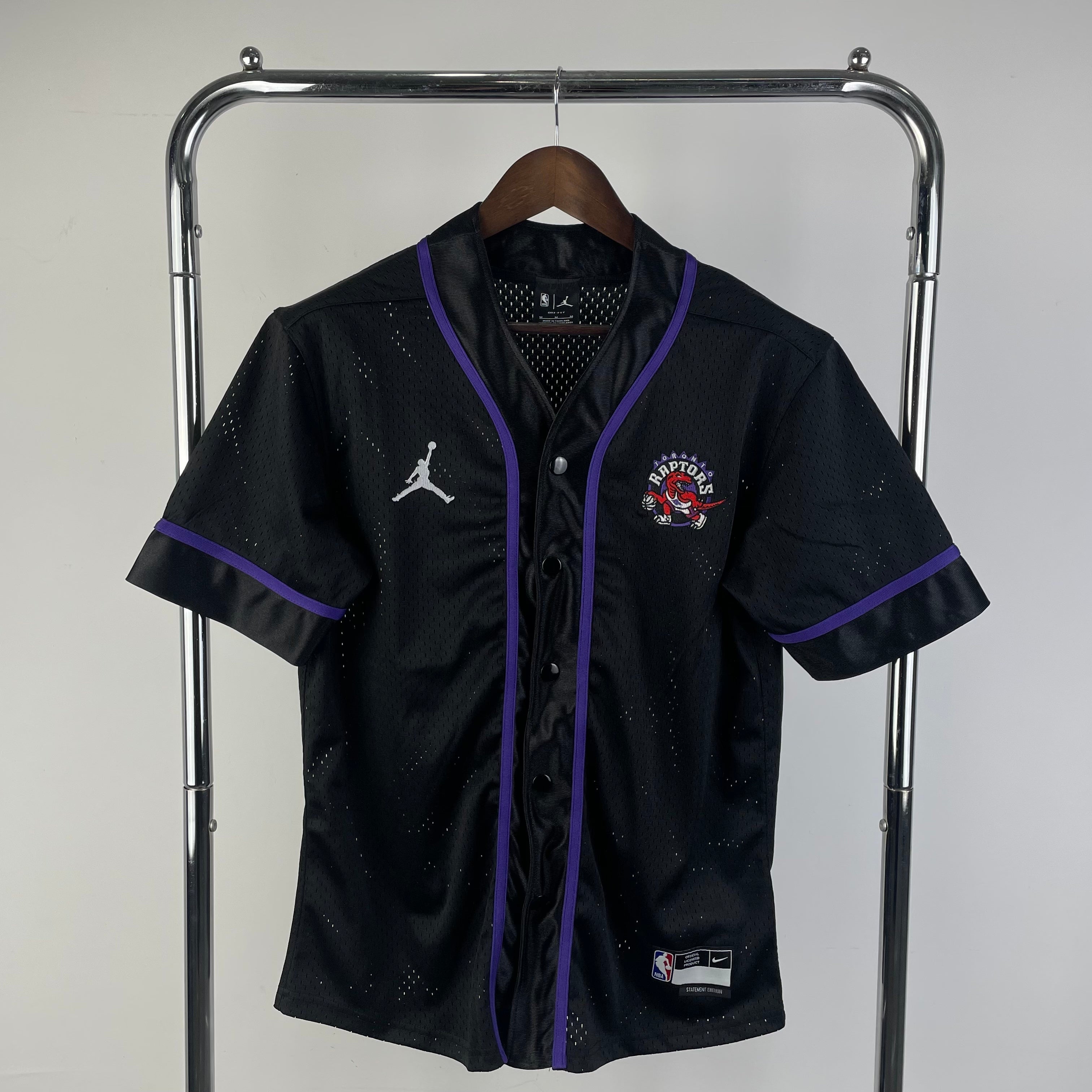 Jersey tipo baseball de los Raptors. Inspirada en el uniforme oficial de la NBA, esta versión cuenta con diseño abotonado al frente, acabados premium y detalles auténticos del equipo.